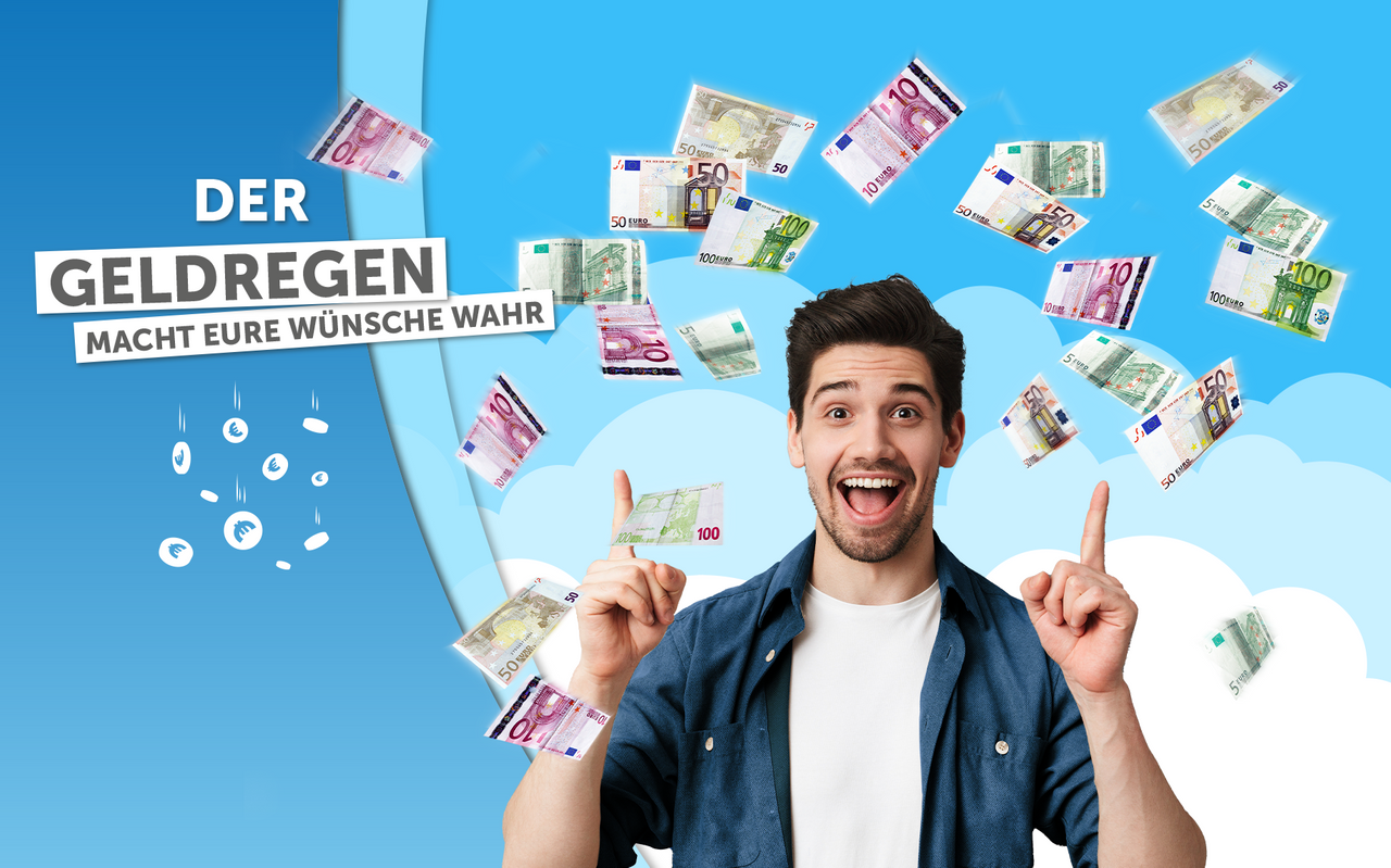 Das beliebteste Radiogewinnspiel ist wieder da: Ihr hört Radio und lasst euch mit etwas Glück euer Konto durch den Geldregen auffüllen. Wir stellen euch wieder in den Geldregen und ermöglichen euch euren Traumurlaub, die anstehende Renovierung oder die Spielekonsole, die ihr schon lange haben wollt. Ihr bewerbt euch telefonisch für die jeweils aktuelle Spielrunde: