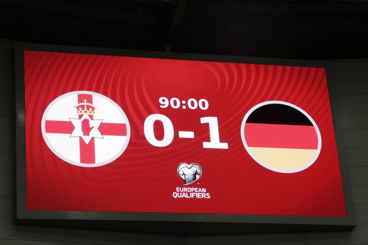Und das mit der Gewissheit, dass der viermalige Fußball-Weltmeister Deutschland im kommenden Sommer ziemlich sicher in Amerika seine 21. WM-Endrunde erleben wird - und das ohne den Stresstest in zwei Alles-oder-nichts-Partien in den Playoffs Ende März. Denn das, was alles überstrahlte, leuchtete im Stadion auf der Anzeigetafel. Da stand: Nordirland - Deutschland 0:1.