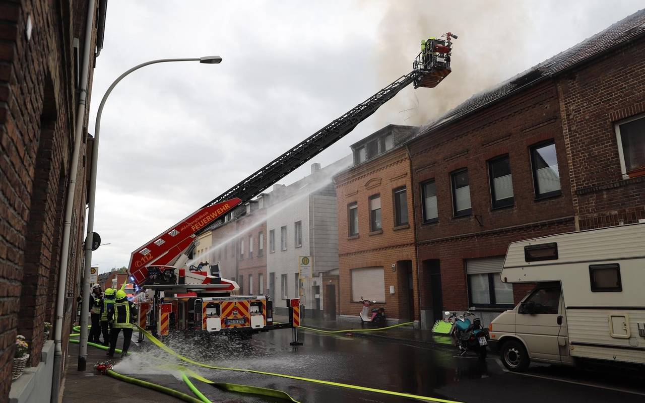 Die Feuerwehr ist im Moment auch bei einem größeren Brand in Giesenkirchen im Einsatz. Da hat der Dachstuhl eines Hauses auf der Straße "Am Sternenfeld" Feuer gefangen.