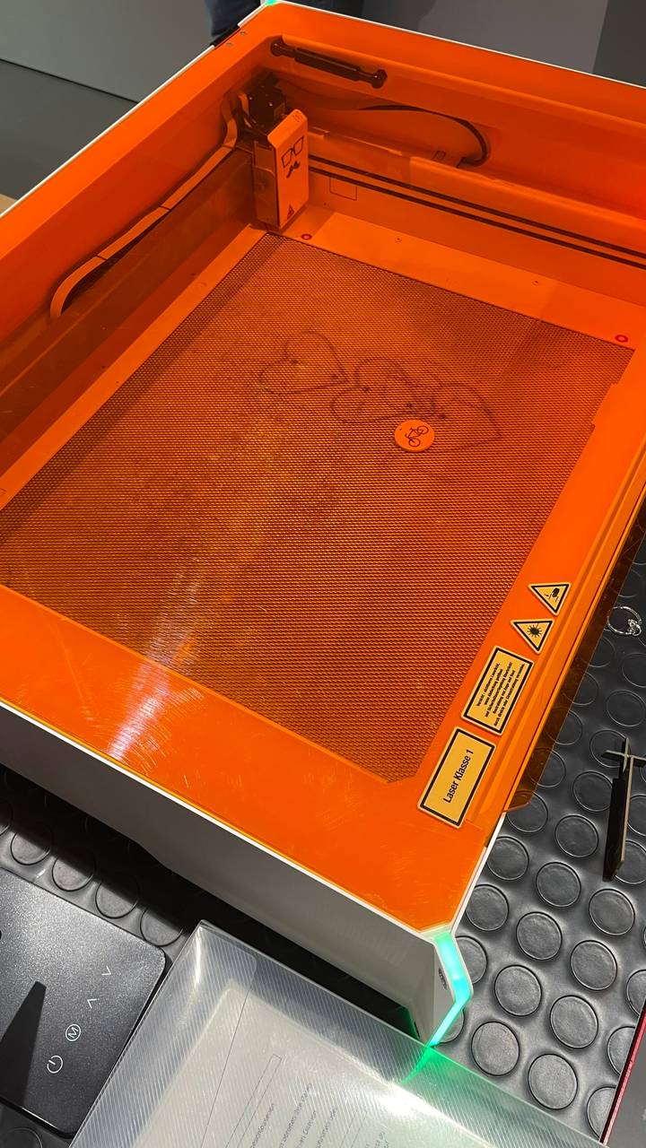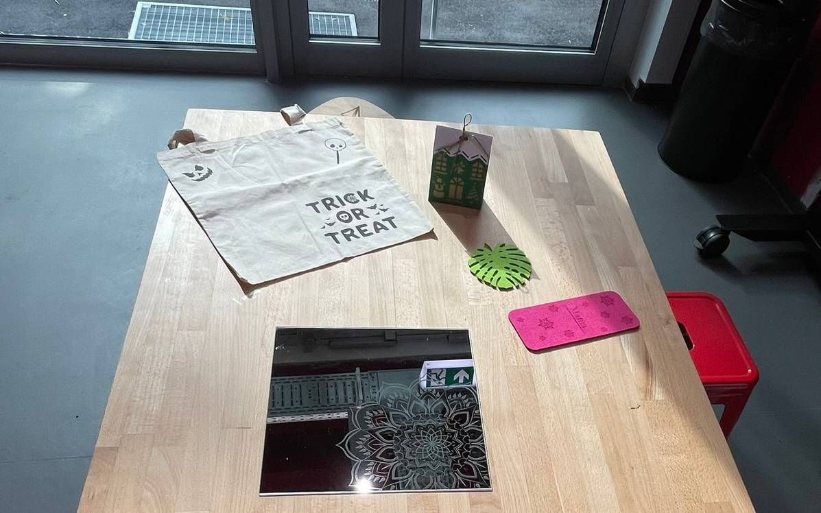 Stichsäge, Heißklebepistole und Schere - das kennen sicher viele als klassische "Bastelinstrumente" aus dem Kindergarten und der Schule. Größere Bastler unter uns haben dann vielleicht sogar einen ganzen Wergzeugkoffer, eine Nähmaschine oder sogar eine Werkbank. Aber die wenigsten haben zuhause wohl einen Plotter, 3D-Drucker, 3D-Scanner oder einen Lasercutter.Trotzdem können wir in Mönchengladbach all diese Geräte für unsere eigenen Projekte Nutzen. Im Makerspace er Stadtbibliothek. Der Makerspace liegt etwas versteckt im Untergeschoss der Stadtbibliothek, ganz hinten in einer Ecke - weil die Bibliothek ja aber am Hang steht, kommt viel Licht vom Adenauerplatz in den schmalen Raum. Der hat zwei große Arbeitstische, von der Decke hängen Würfel mit Steckdosen, die man sich nach Bedarf zu seinem Arbeitsplatz hinunterziehen kann. Im Raum verteilt stehen außerdem mehrere Geräte, die zunächst wie aus einem Science-Fiction Film wirken - helle Farben, bunte Lichter und viele Kabel: zwei unterschiedlich große 3D-Drucker und der dazu passende Scanner auf einer Theke an der Rückwand und darunter ein Plotter. Direkt im raum in weiß und Orange der große Lasercutter.