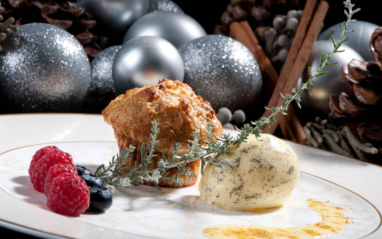 Rezept: Weihnachtlicher Brotkuchen mit Walnüssen und Rosinen, dazu Vanilleeis