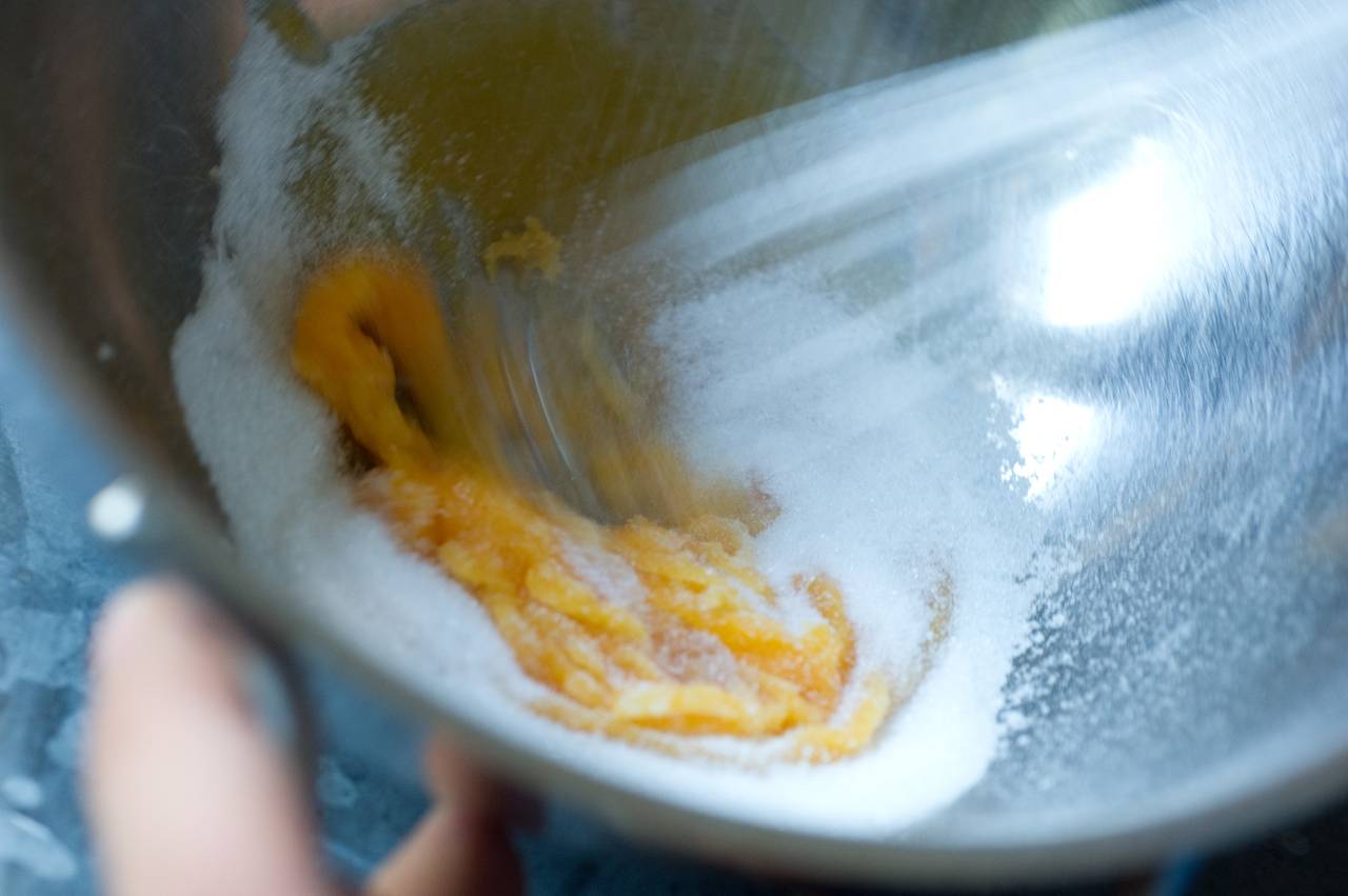 Dosenmilch mit dem Handrührgerät 10 Minuten aufschlagen, dann das Mark der