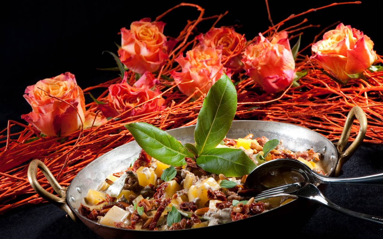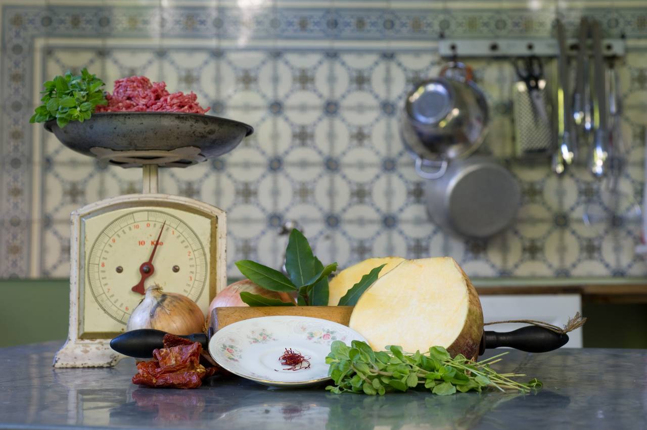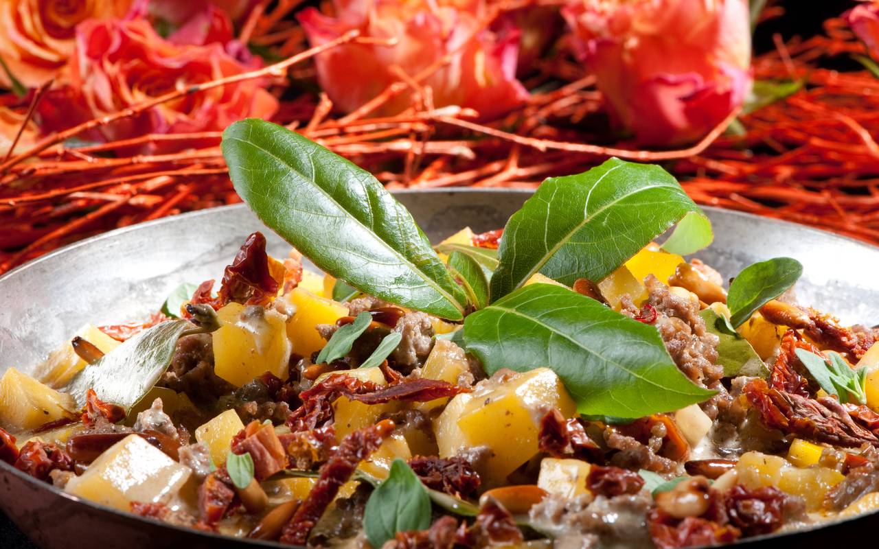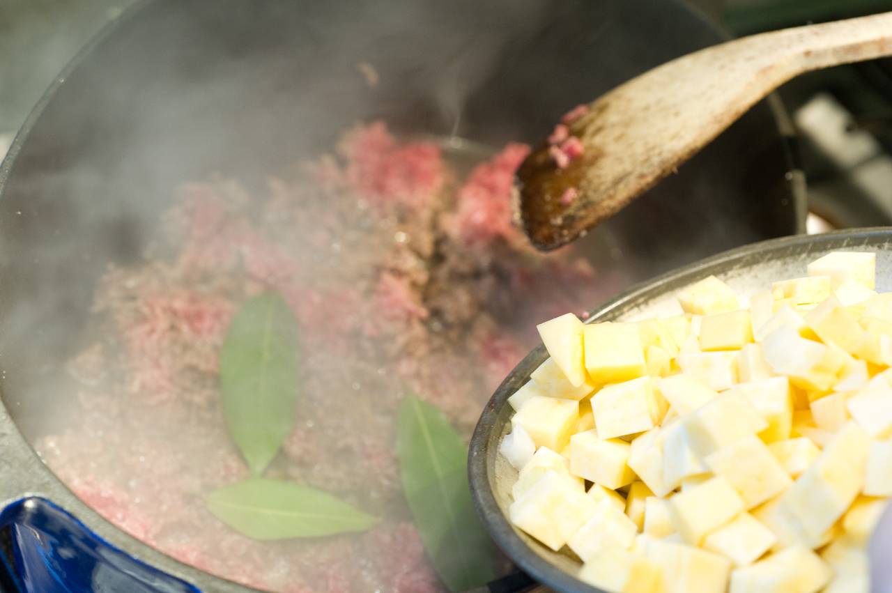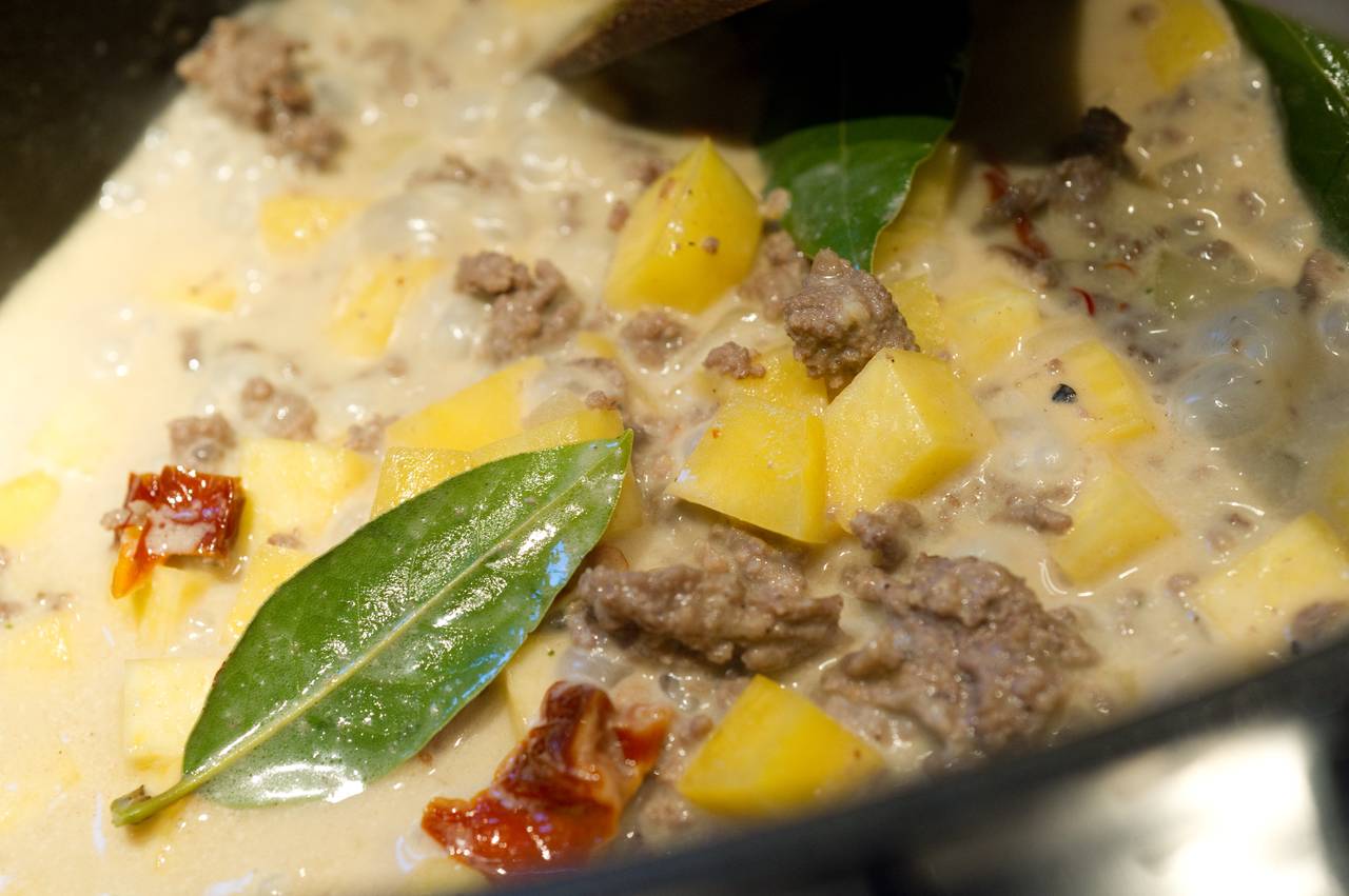 Steckrübentopf mit Hackfleisch (Rind), getrockneten Tomaten und Safran