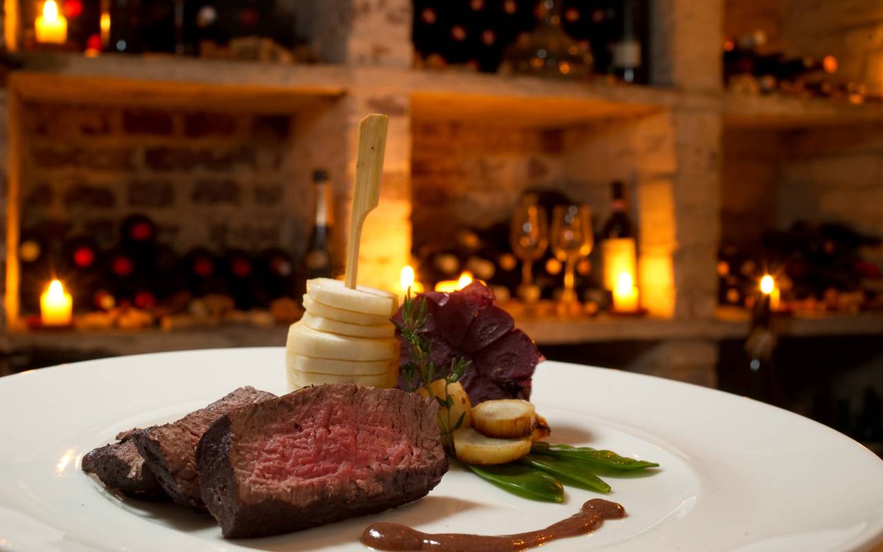 Rinderfilet mit Leberwurstsauce, Pastinaken und Zuckerschoten