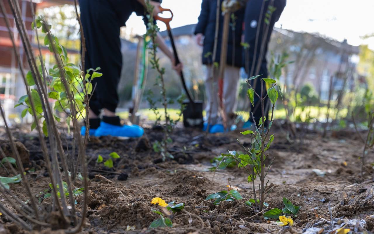Am Math-Nat.-Gymnasium ist ein neuer kleiner Wald entstanden. Den haben Schüler zusammen mit der mags auf rund 100 Quadratmetern angelegt.