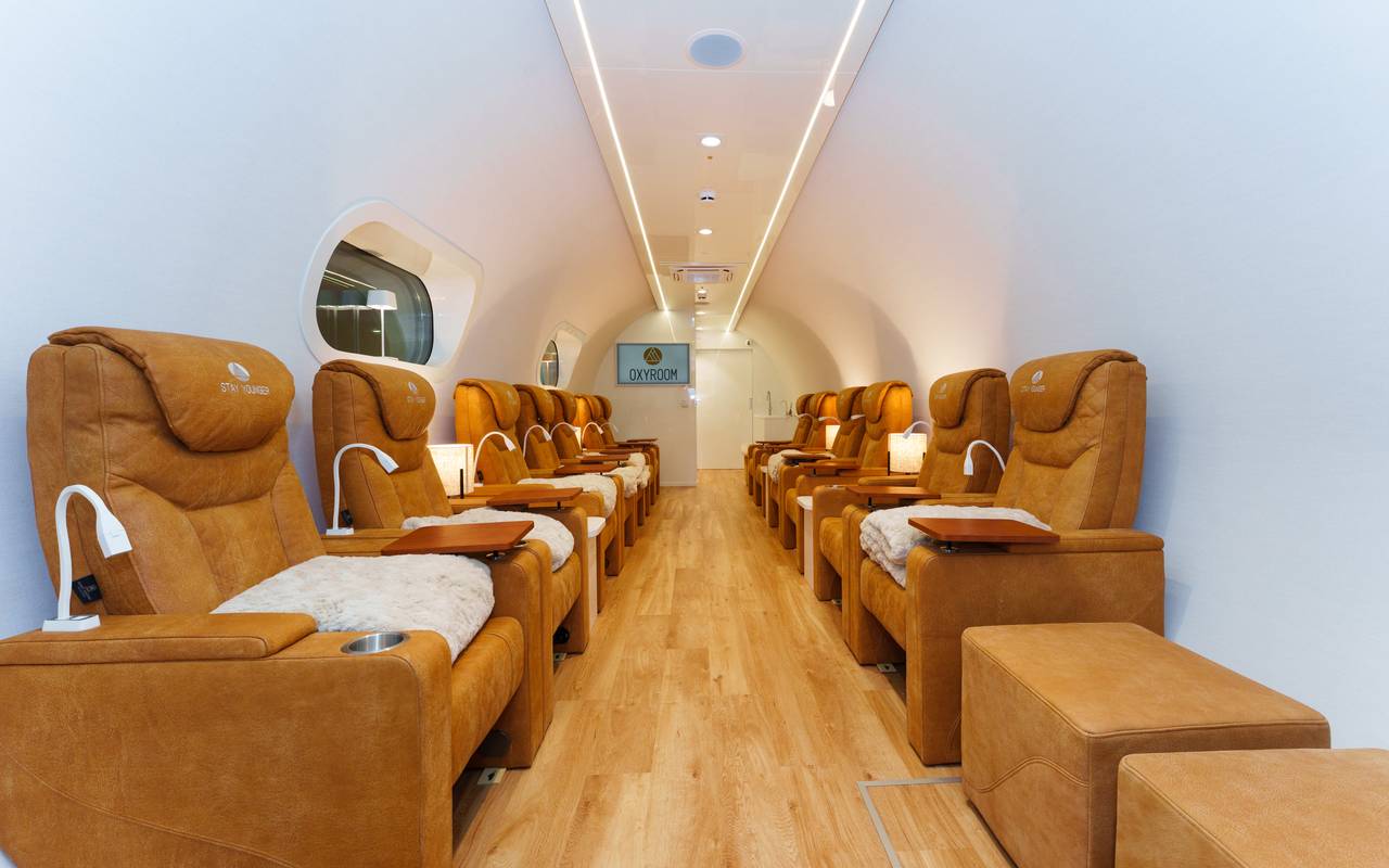 Der neue Oxyroom verspricht eine Luft wie nie zuvor: 100 % mehr Sauerstoff, 10.000-mal mehr Wasserstoff, 50-mal mehr Kohlendioxid und 1,5-facher Umgebungsdruck. Und was soll das Ergebnis sein? Maximale Unterstützung für deine Energie, Regeneration und mentale Klarheit – ganz ohne Maske, einfach entspannen und auftanken wie in einem Luxus-Flieger. Deine Zellen sollen mit jedem Atemzug neue Kraft gewinnen und du sollst dich vitaler, entspannter und leistungsfähiger fühlen. Entdecke, wie einfach Erholung heute sein kann.
